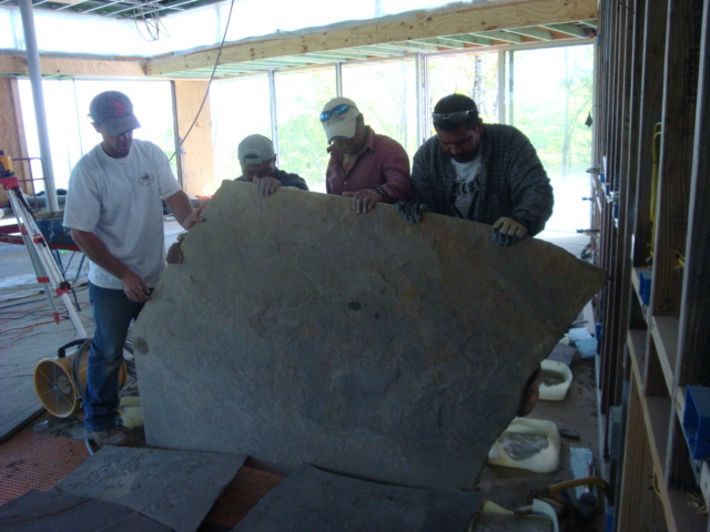 Posted on March 21, 2012 by CrossFit Strength It took all 4 of us to set this stone, it should look good when the cabinets are in.